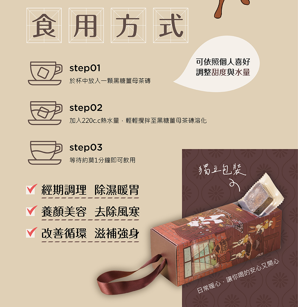無論日常調養或送禮分享,一杯黑糖薑母茶,都是最貼心的呵護。
